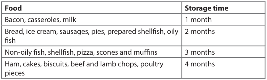 - These times vary depending on the type of food. The food that you freeze can be preserved for 1 to 12 months (minimum at -18°C).