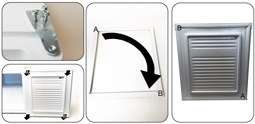 - When you change the direction of rotation of the door, we recommend that you rotate the rubber seal as shown in the picture. This will allow the door to seal perfectly when you replace it.