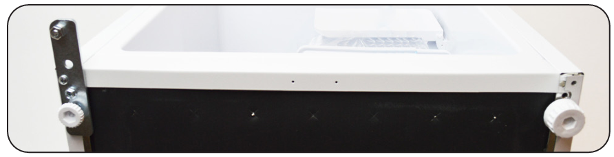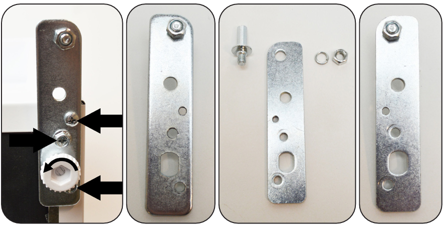 - Attach the metal plate to the other side of the refrigerator with 3 screws. Screw the feet into the openings provided for this purpose.