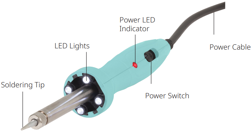 High-Performance LED Soldering Iron Featuring four long-life LEDs for superior soldering accuracy and enhanced illumination.