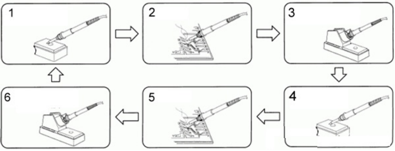 - Before soldering, clean the tip using a sponge, and then apply tin to the tip.