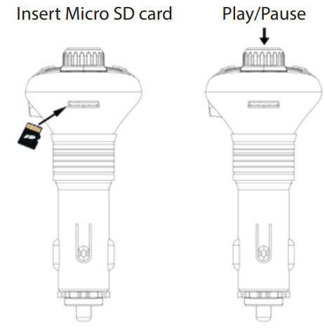 - Insert a Micro SD card containing MP3 files into the Micro SD Memory Card Slot of this unit. It will play and