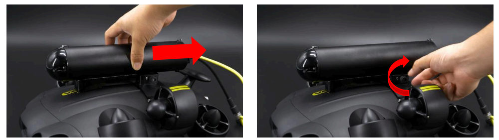 - Secure the E-Tank Mount on the ROV. Unfasten and take off just one side of the fixing screws.