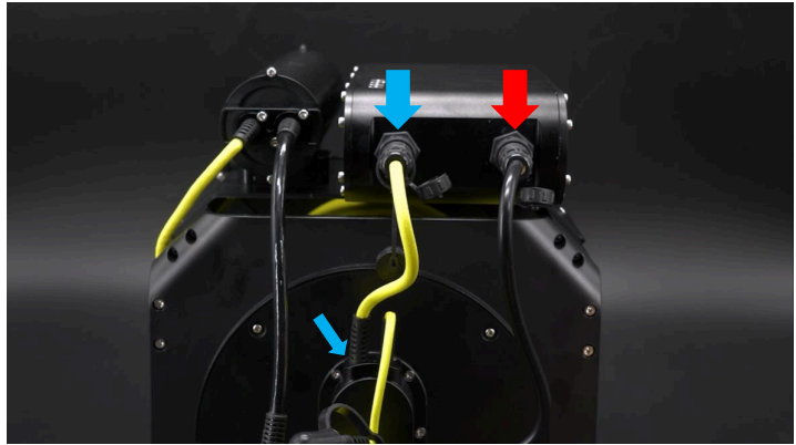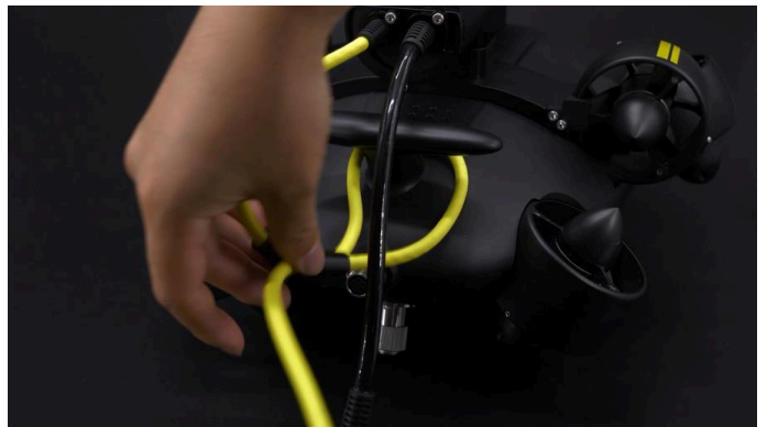 PLUG the ROV plug (Black color) in ROV tether connector and FASTEN the cap on the ROV plug.