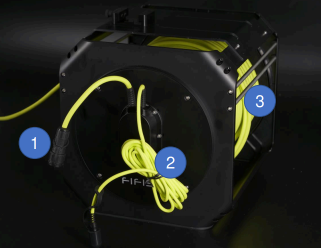 - Cable connection on OPSS-PM Plug AC output on OPSS-PM (another end to the spool’s reel)