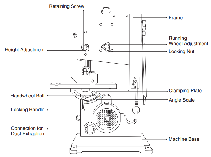 - Check the saw blade before use. Do not use faulty band saw blades.