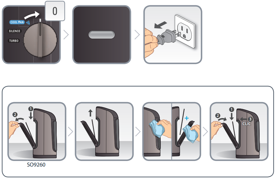 - A safety device shuts down the unit. Unplug your device and allow it Rowenta SO 9260 Mechanic Ceramic Fan Heater to cool down at least 30 minutes; then eliminate the fault that might have locked your device.