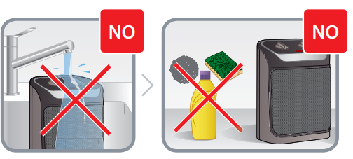 - DO NOT use any detergents or abrasives, and do not allow any water to enter the heater.