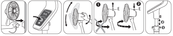 - Close the fuse cover (E) by sliding the fuse cover back over the fuse box in the plug until it is completely closed. Plug the fan back in and resume use.