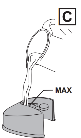 - Fill until the water reaches the “MAX” level mark on the top of the tank. Do not overfill.