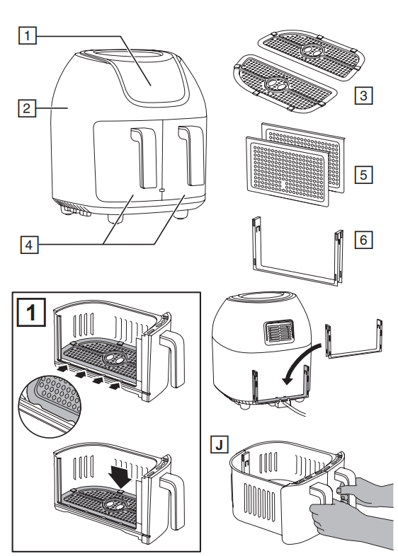 - The baskets, basket dividers, and crisping trays can also be washed in a dishwasher.