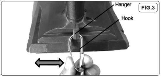 • Clasp the hook on the shoulder strap to the tool’s hanger (fig.3).