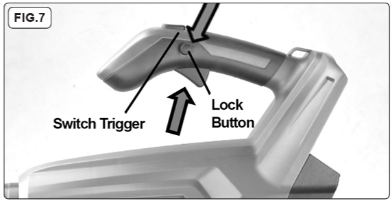 • Locking the switch trigger on allows you to operate the blower for extended periods of time.