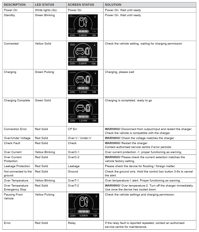Portable Type-2 charger is fitted with a 3-pin plug so it can be used with any standard 13A socket. Delay timing function enables users to program delayed start time to benefit from off peak electricity tariffs. The intuitive LCD screen offers users fault codes, charging time, power and temperature displays. Supplied with storage bag.