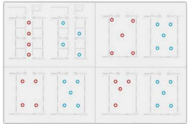- Avoid ceiling mounting in high-rise buildings (floor height > 4m). Opt instead for wall or low-level installation, approximately 5m apart. Outdoors, use a triangular grid pattern for open spaces.