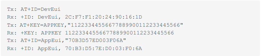 • AT+ID=DevAddr,”devaddr” // Set new DevAddr