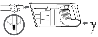 To charge, remove the handheld vacuum from the wand by pressing the Wand Release button and pulling up. Plug the charger into the charging port.