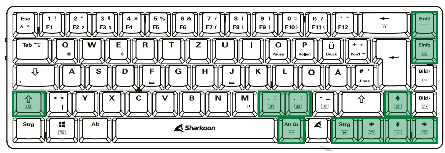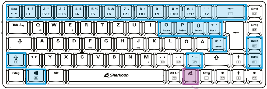 - Press Fn + L_Shift. The L_Shift LED will flash Sharkoon PureWriter W65 white to indicate that the lighting profile is ready to be set up.