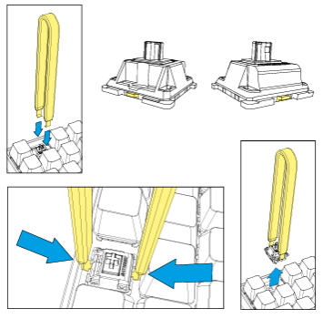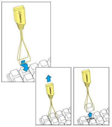 • To do this, place the arms of the keycap puller tool either to the left or right or to the top or bottom of the keycap, and then pull the keycap upwards with careful but constant pressure.