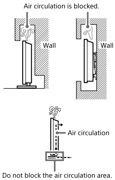 - Place the OLED Monitor in a humid or dusty space, or in a room with oily smoke or steam (near cooking tables or humidifiers). Fire, electric shock, or warping may result.