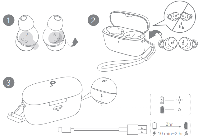 Fully dry off the earbuds and the USB charging port before charging.