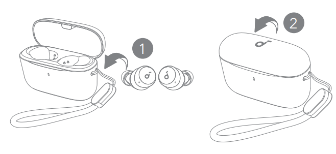 To power off, return the earbuds to the charging case and close it.