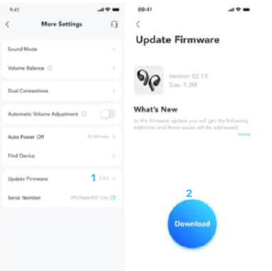 You will be informed once a new firmware version is detected when you connect the earbuds to the app. Ensure the earbuds are placed in the charging case nd the case remains open until the firmware update is complete. During the update, ensure the earbuds are being charged and avoid any usage.
