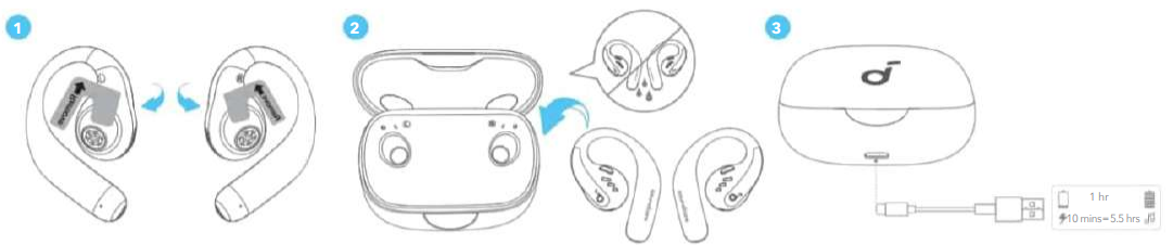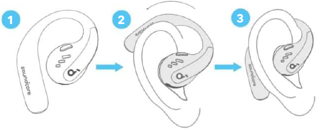 Pick up the earbuds from the charging case, then rotate the earhooks along the auricles of your ears to achieve proper positioning.