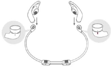 - Snap the earbuds onto the detachable neckband. Make sure the orientation is correct by aligning the marks on the earbuds and detachable neckband.