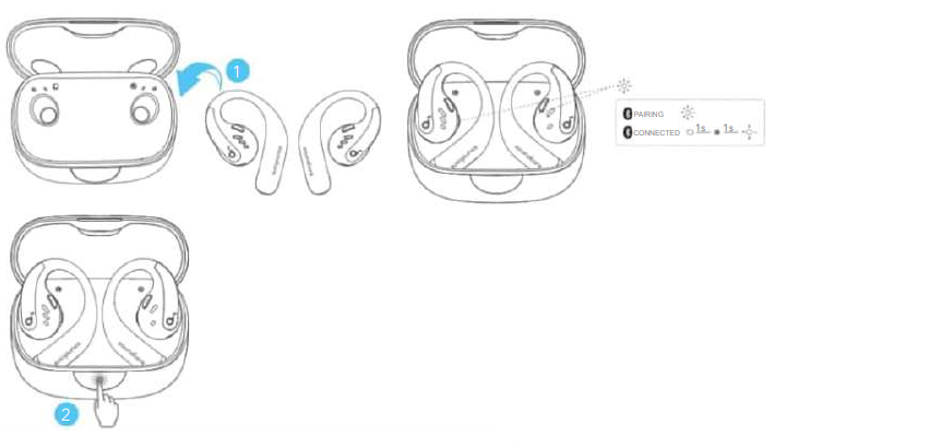 - The earbuds will automatically enter Bluetooth pairing mode when connecting for the first time.