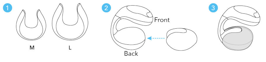 - Move the earbuds upwards or downwards until they fit securely, and you can hear the sound well. If the fit feels loose, you can choose between M and L size ear grips to enhance stability.
