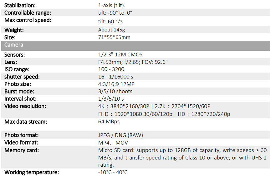 - If seawater or other sediments form on the gimbal camera, soak thoroughly with fresh water and clean all sediments on the camera and motor before use.