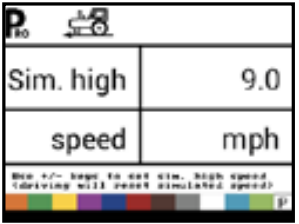 | Simulated Ground Speed – High Speed | ![]() | Set simulated high speed. | 9.0 mph 15.0 km/h |
