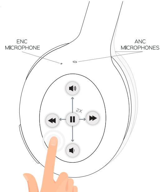 - Awareness mode: When the headphones are turned on, close the right earcup with your palm.