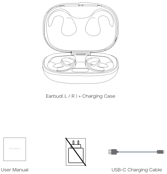 - Charging of the charging case: Insert one end of the USB cable into a power supply that supports 5V output, and the other end into the charging port of the charging case.