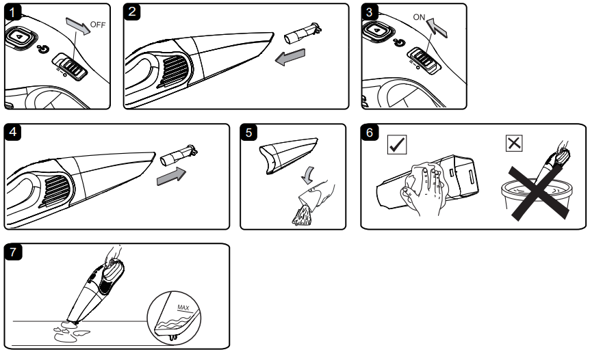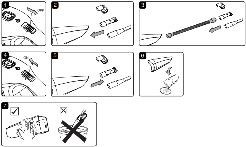 - Empty the dust cup, clean and dry the inside and outside before storage.