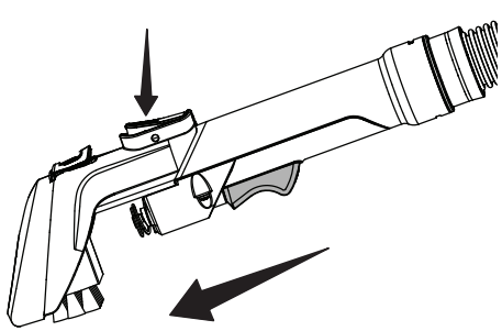 - Press the tool release button to remove VacMaster SCB301 400 Series Spot Cleaner the attachment from the hose.