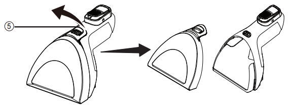 - Pull up the cover release tab ( 5 ) on the nozzle to remove the cover.