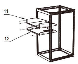 - Place the Left lower Bracket between the Half-frame Assembly, align the two holes in the Vertical Rail and the Left lower Bracket.