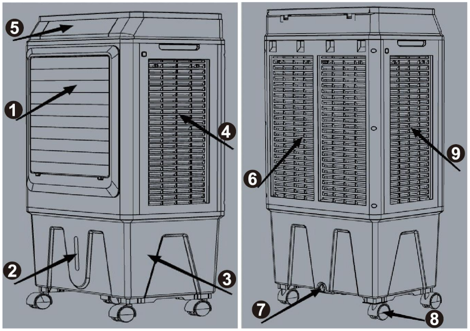 - Complete the assembly of the air cooler before switching it on the air cooler.