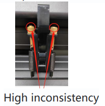 - Solution: Because the tension of the paper press is inconsistent, rotate the two yellow copper nuts on each paper press to the same height, then the pressure is balanced, as shown below: