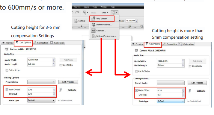 - Solution: When the cutting height is 3-5 mm, the software compensation value is set to 0.45, and the speed is adjustedto400mm/s.