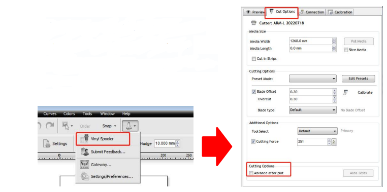 - Solution: Cancel the automatic paper feeding function after cutting in the software, as shown below: