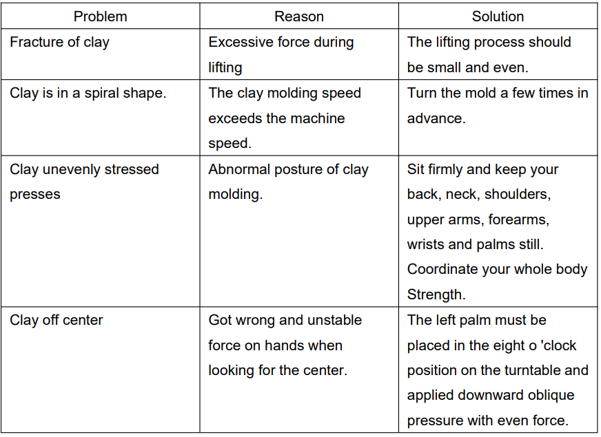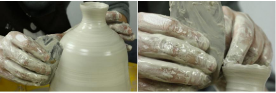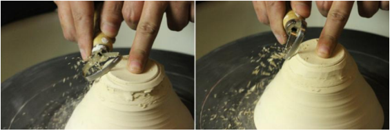 Assist in precisely cutting clay (cutting surface is very smooth)/repairing and leveling the mouth of the work/taking away the finished product.
