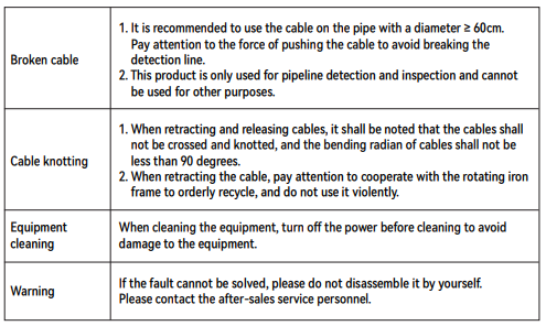 - After utilisation, move the camera from the pipe carefully, take a clean, soft, and dry cloth to clean it, and put it back.