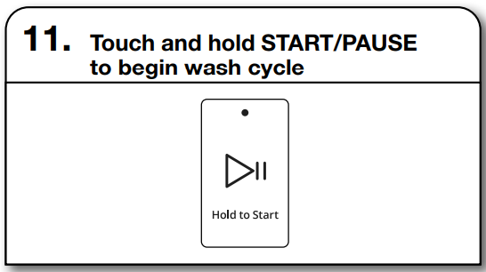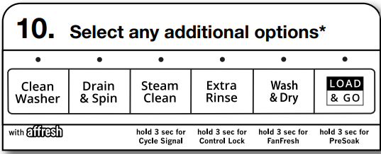 - Touch and hold START/PAUSE to begin the cycle. The Clean Washer with affresh® cycle operation is described below.