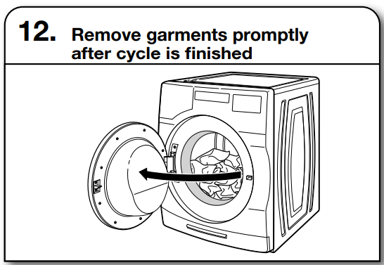 - Do not wash articles that have previously been cleaned, washed, soaked, or moistened with gasoline, dry-cleaning solvents, or other flammable or explosive substances, as these release vapors that could ignite or cause an explosion.