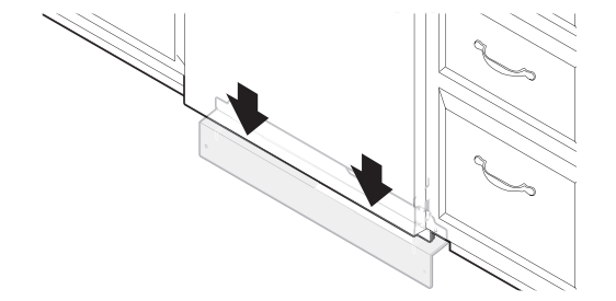 Place the toe panel behind the access panel against the dishwasher leg. Push the access panel up toward the top of the product so that it hangs on the hooks on the plastic side members.
