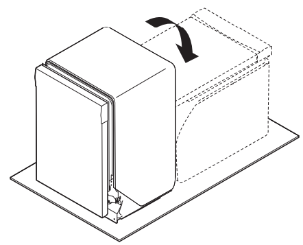 Place cardboard under the dishwasher until installed in the cabinet opening to avoid damaging the floor covering. Using two or more people, grasp the sides of the dishwasher door frame, and place the dishwasher on its back. Do not use the door panel as a worktable without first covering it with a towel to avoid scratching the door panel.