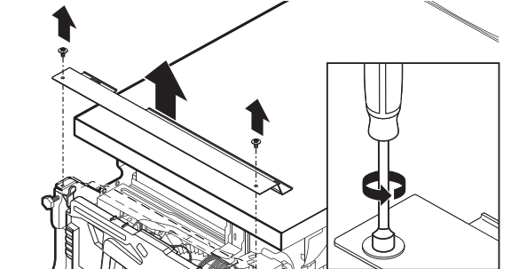 Using a 5/16″ (7.9 mm) nut driver, remove the two screws attaching the access panels to the dishwasher. Once the screws are removed, push the access panel toward the top of the product to unhook it and then remove it.